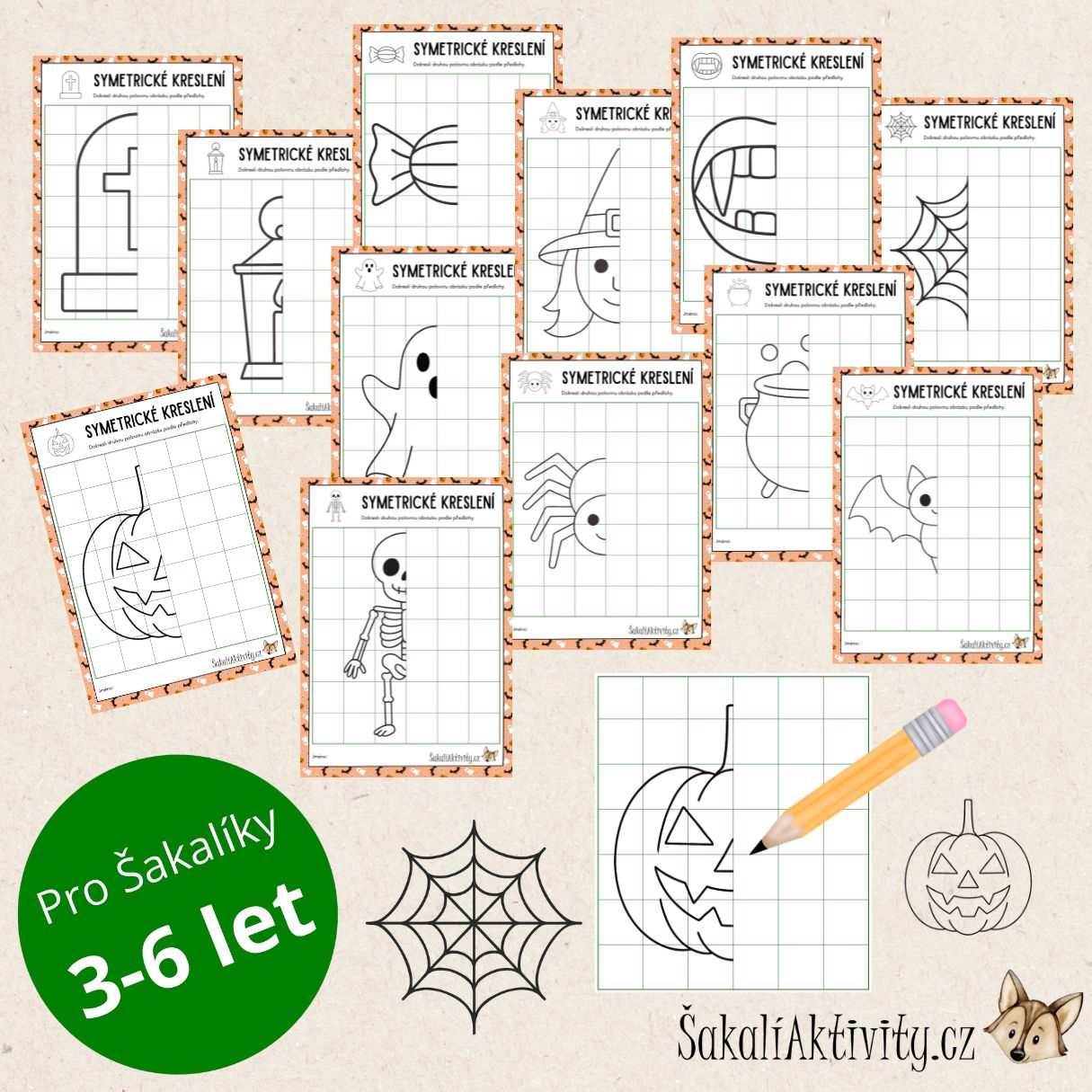 HALLOWEEN - SYMETRICKÉ OBRÁZKY/KRESLENÍ