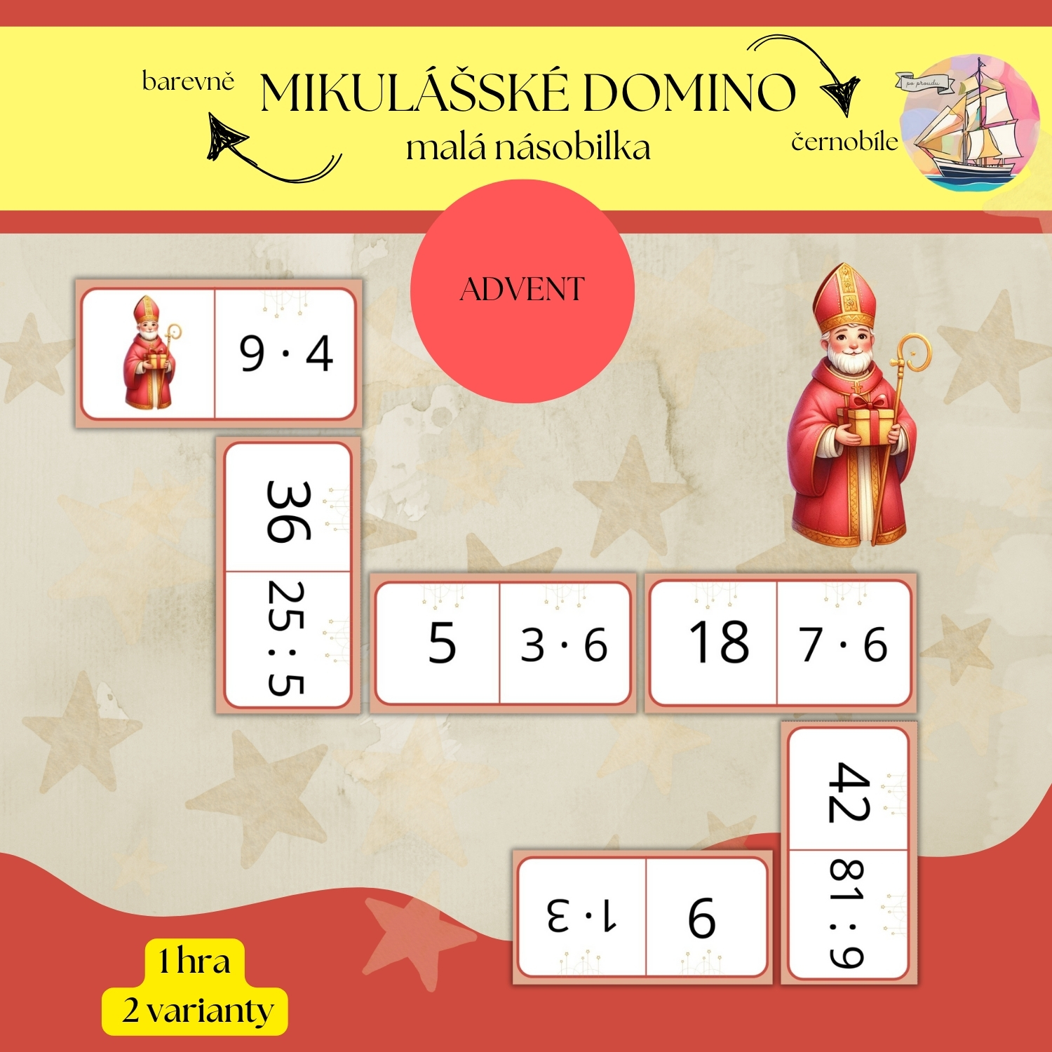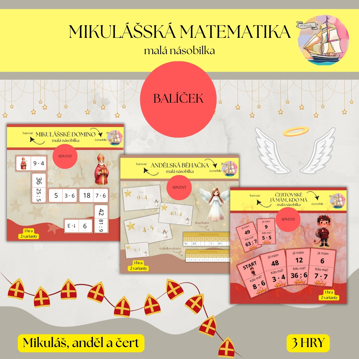 MIKULÁŠSKÁ MATEMATIKA - MALÁ NÁSOBILKA (DOMINO, JÁ MÁM, KDO MÁ A BĚHAČKA)
