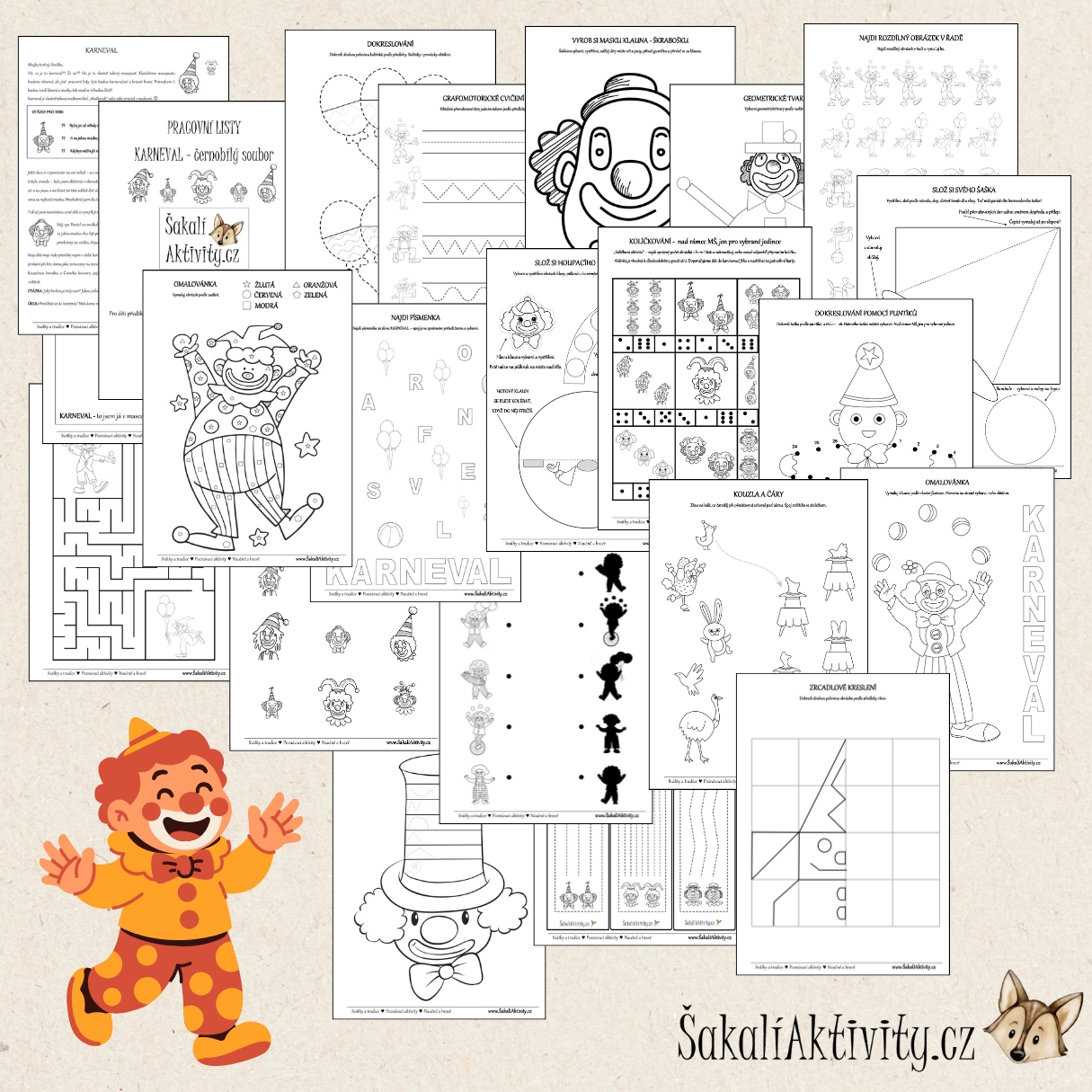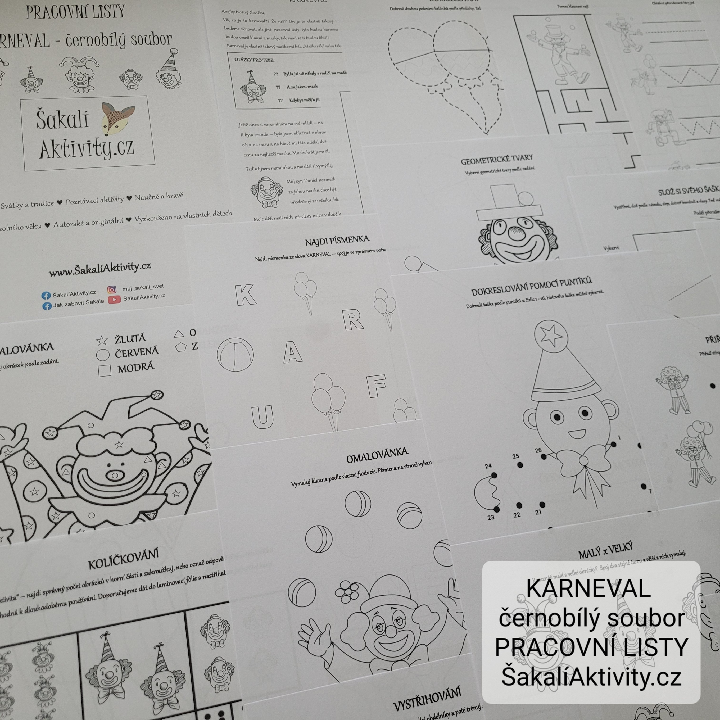 PRACOVNÍ LISTY - KARNEVAL - ČERNOBÍLÝ SOUBOR