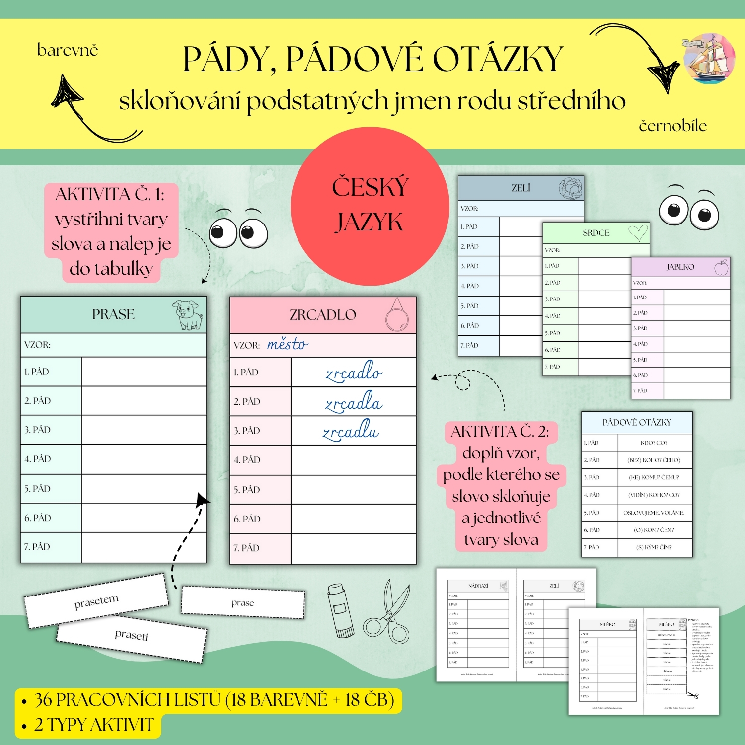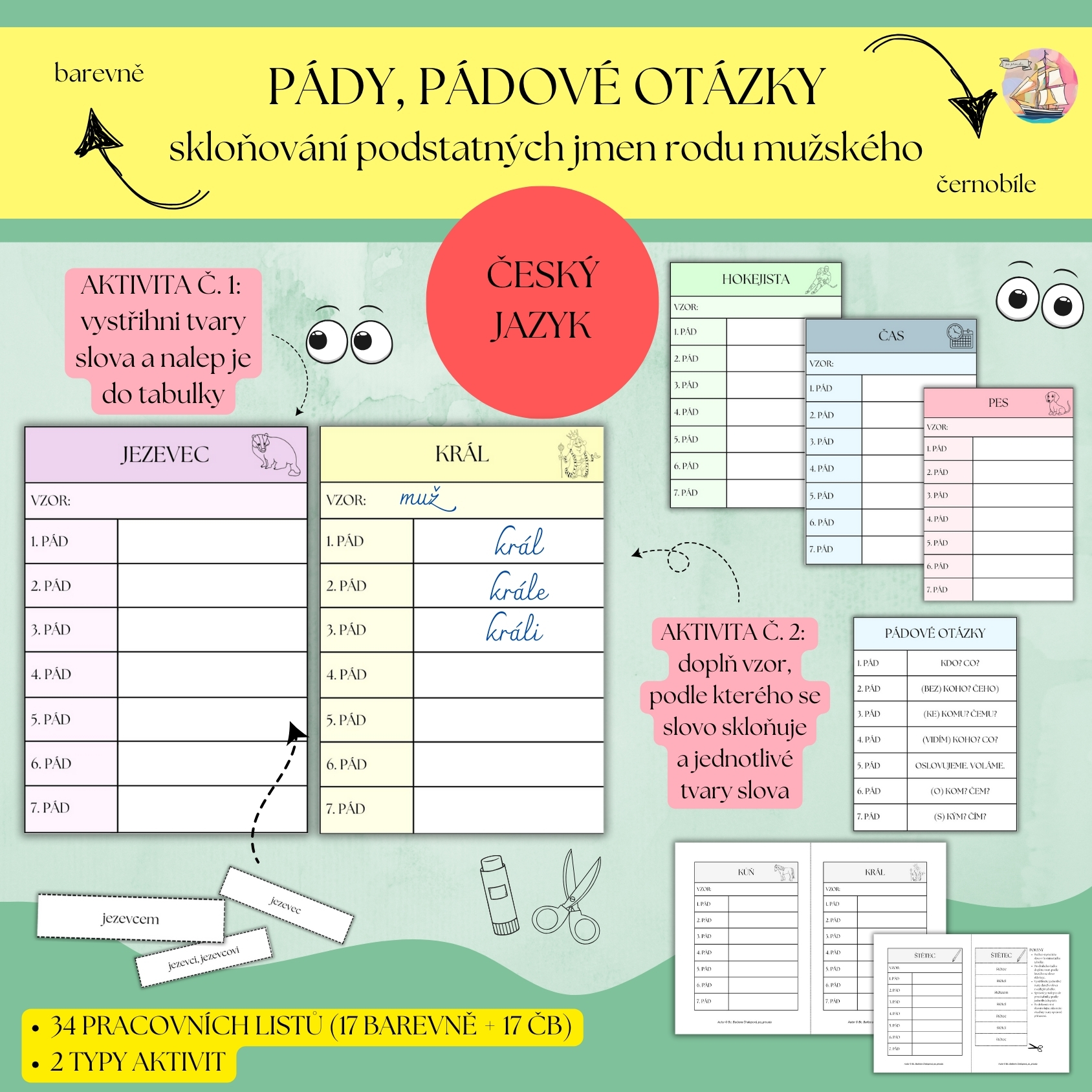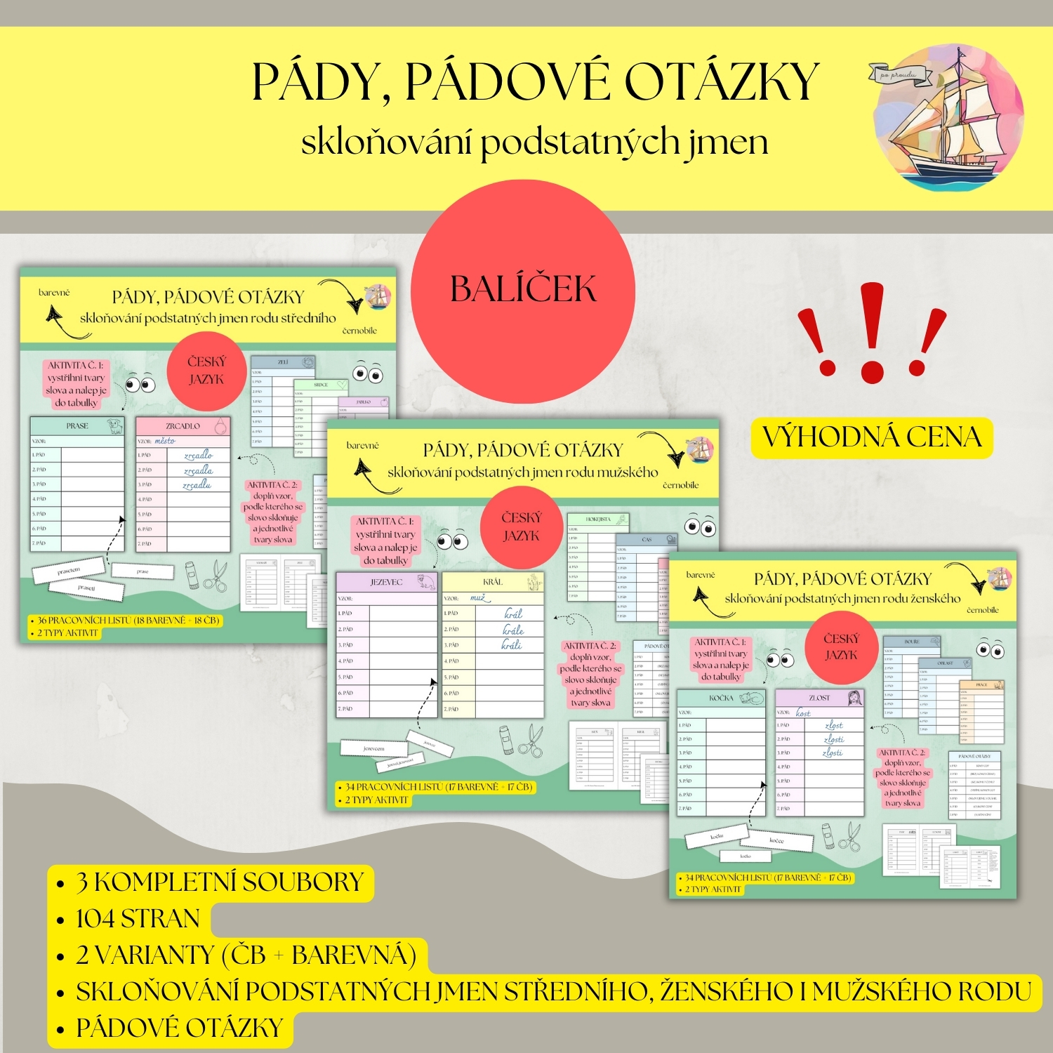 SKLOŇOVÁNÍ PODSTATNÝCH JMEN PRACOVNÍ LISTY - VÝHODNÝ BALÍČEK