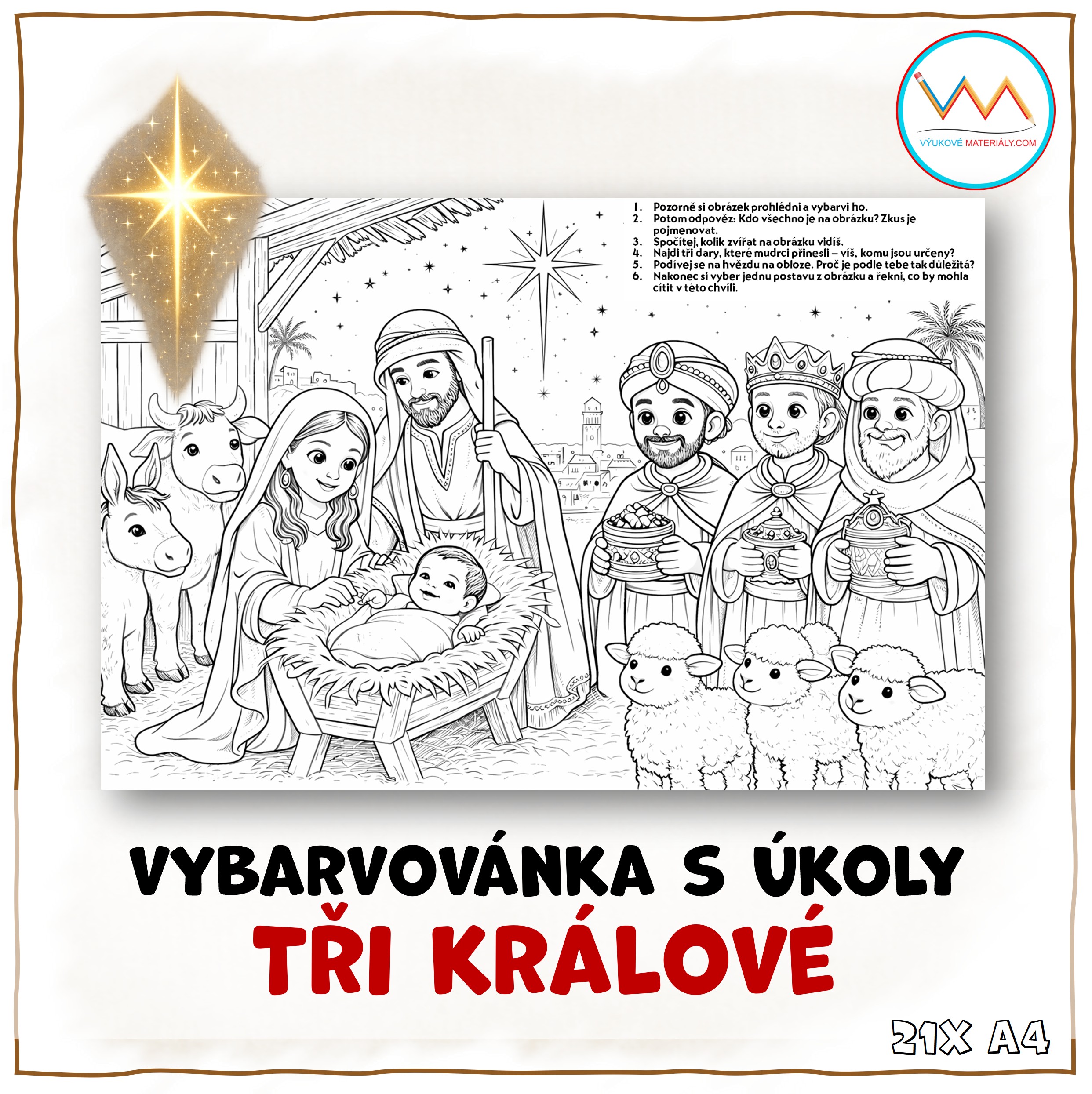 TŘI KRÁLOVÉ - VYBARVOVÁNKA S ÚKOLY
