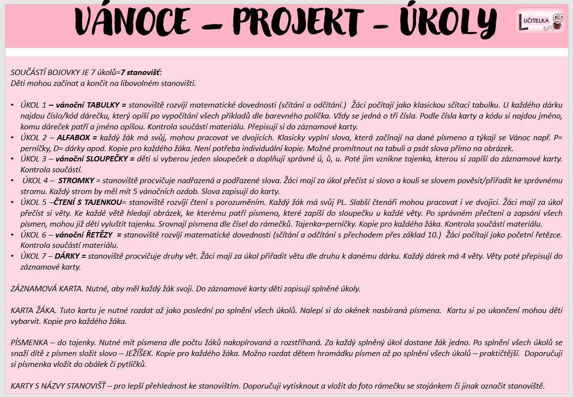 VÁNOCE - PROJEKT PRO 2. TŘÍDU