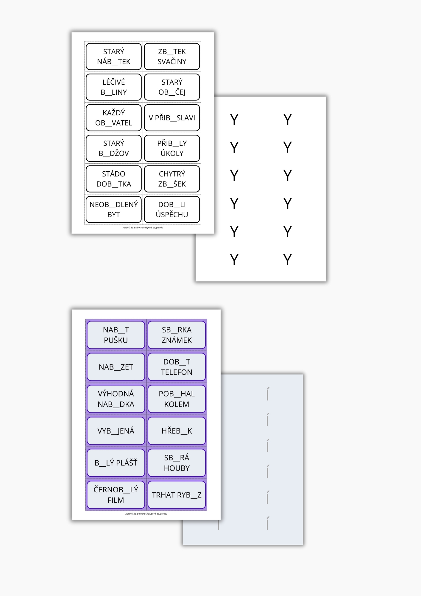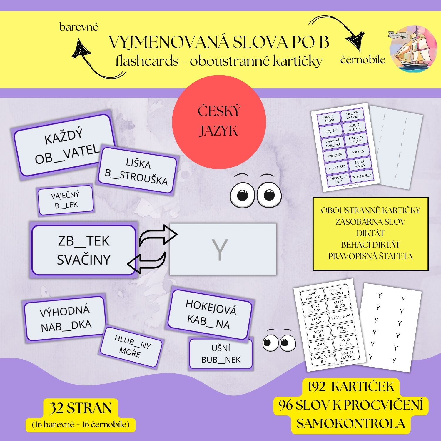 VYJMENOVANÁ SLOVA PO B - FLASHCARDS (OBOUSTRANNÉ KARTIČKY)
