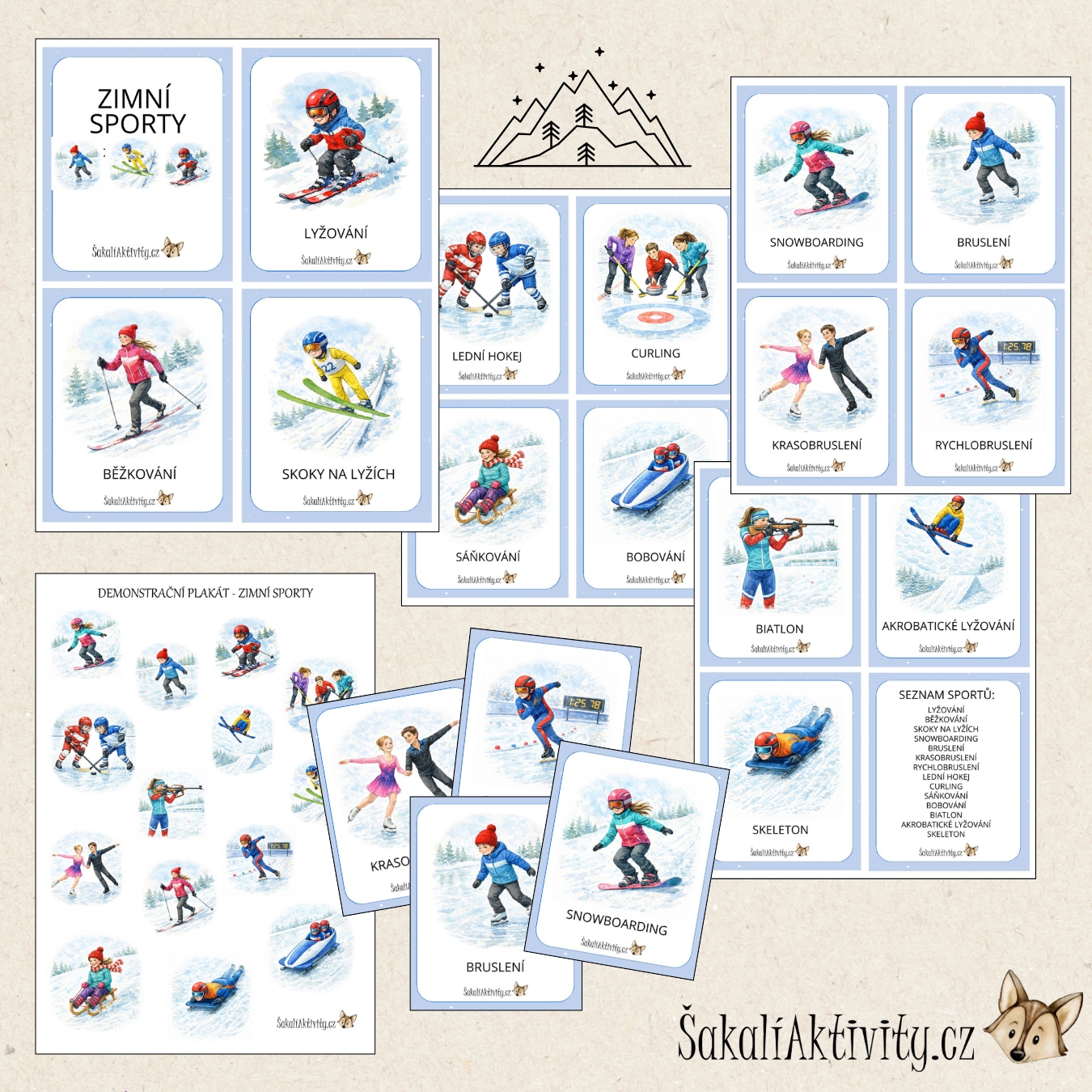 ZIMNÍ SPORTY - KRESLENÉ - DEMONSTRAČNÍ KARTY